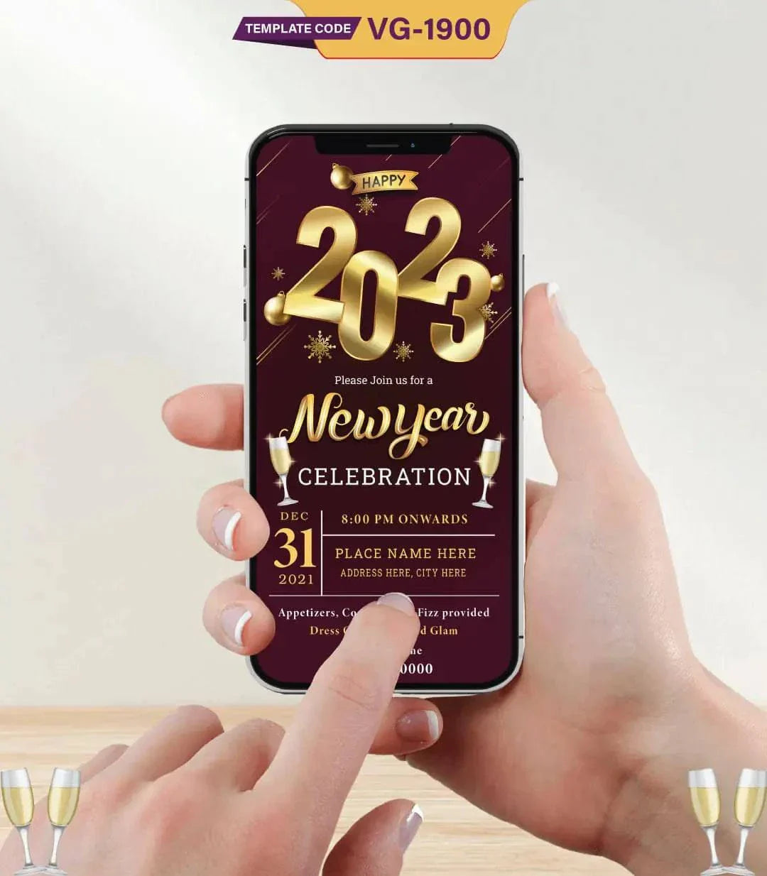 #VG1900 #NewYearEInvite2023 #GlitzyPartyCard #ChampagneNewYearCard #DigitalNYInvite #NewYearWhatsAppCard #ElegantPartyEInvite #LuxuryNYECard #MaroonGoldECard #NYE2023Invite #EditablePartyCard #FormalCelebrationInvite #CocktailPartyCard #NYDressCodeInvite #DigitalPartyECard #GlamorousNYEInvite #InstantPartyCard #FizzAndFunCard #NewYearEventInvite #ChampagneCheersInvite