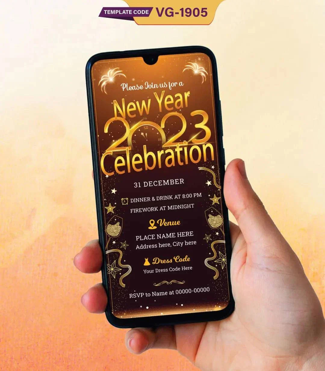 #VG1905 #NewYear2023Invite #GoldenNYECard #ClassyPartyInvite #MidnightFireworksCard #31stDecPartyEInvite #DigitalNewYearCard #2023CountdownInvite #ElegantNYECard #LuxuryInvite2023 #EditableNewYearCard #NewYearPartyWhatsApp #OnlineInvitation2023 #GoldThemeEInvite #FireworkNYEPartyCard #InstagramPartyInvite #NewYearCelebration2023 #GlitterInvitationCard #DigitalPartyInvite #NYEDinnerCard